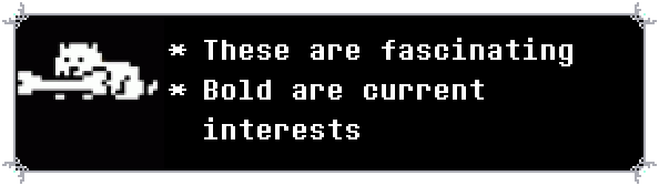 LAST UPDATED 11/15/2022**Pokemon*, Undertale, Deltarune, **Animal** Crossing, Puppet History[watcher], Buzzfeed Unsolved & Supernatural, Slimerancher, Omega Mart, Dinosaurs, Clowns, dt & dst [dont starve & dont starve together], **MSM[my singing monsters]**, The Stanley Parable, wobbledogs, TF2, bugsnax, **FNAF**, S4M[smile for me], **BATIM & BATDR [bendy and the ink machine] [bendy and the dark revival**, Stardew Valley, UGG[Untitled Goose Game], MADCOM[madness combat], **DHMIS[Dont Hug Me Im Scared]**, Minecraft, Roblox, TTCC[toontown corporate clash], science